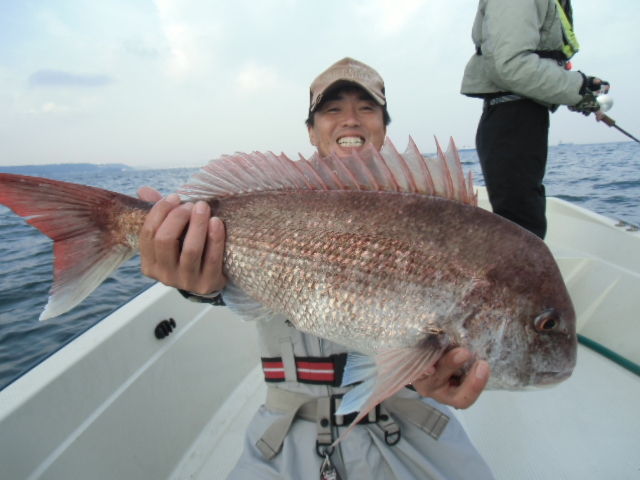一人だけ、バリバリアタリます。。バラシてもすぐに竿先バタバタしてます。